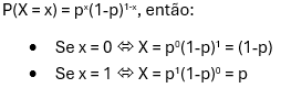 A distribuição de Bernoulli é um caso especial da distribuição binomial, onde uma única tentativa é conduzida (nesse caso n seria igual à 1 em uma distribuição binomial) e a escreveríamos como abaixo: